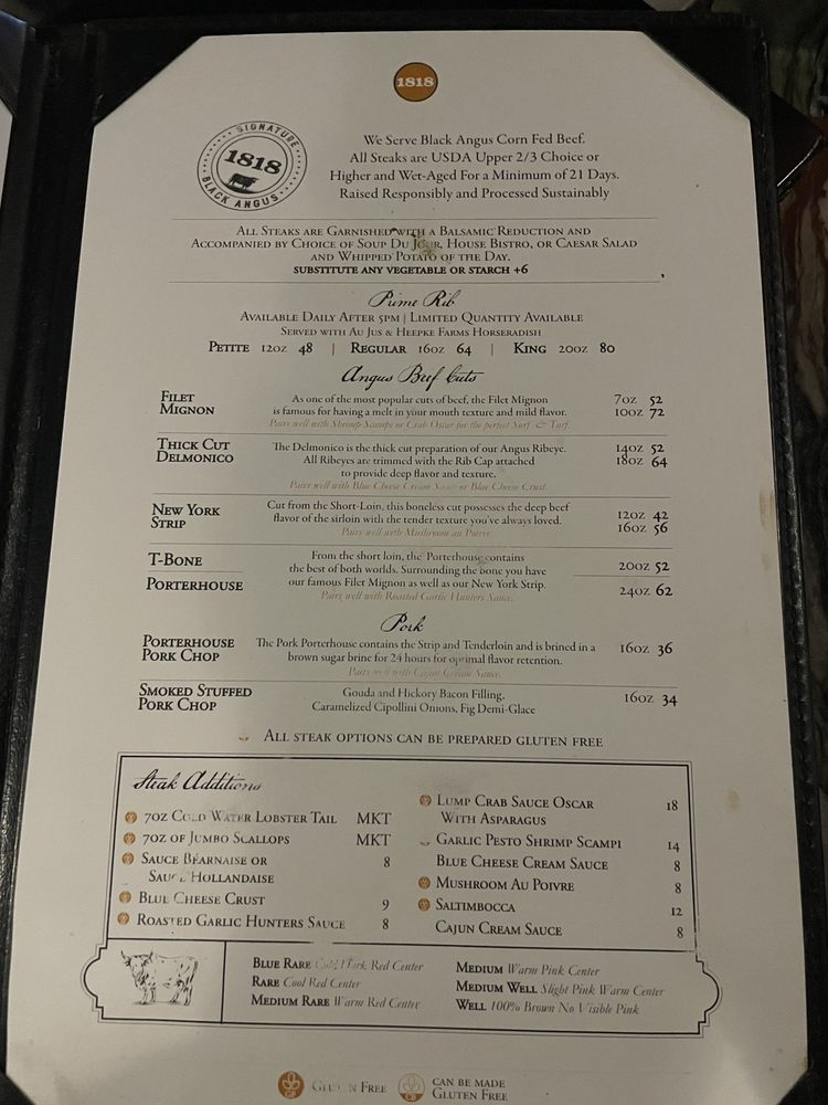 Introducing the menu at 1818 Chophouse, a standout destination in Edwardsville for seafood and steak lovers alike. This elegant establishment blends upscale charm with a cozy atmosphere, featuring dim lighting and rich wood tones. The menu showcases a delightful range of dishes, from exquisitely tender prime rib swimming in savory au jus to the rich, flavorful duck breast layered over creamy mashed potatoes.